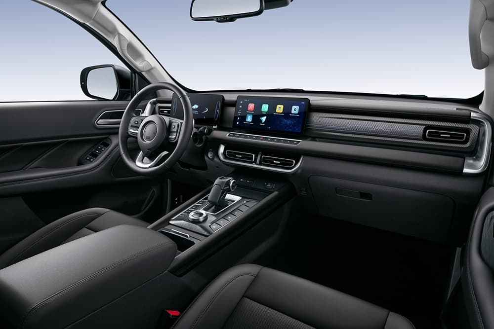 Интерьер автомобиля выполнен с использованием искусственной кожи, руль регулируется по наклону и вылету. В оснащение входят климат-контроль, обогрев передних сидений, рулевого колеса, боковых зеркал, зоны покоя стеклоочистителей, а также аудиосистема с шестью динамиками. Приборная панель цифровая, с 7-дюймовым дисплеем, мультимедийная система представлена 12,3-дюймовым экраном. Также предусмотрены круиз-контроль, две подушки безопасности и камера заднего вида.
