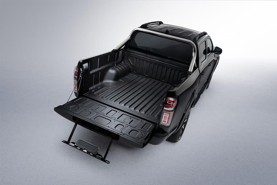 В этом варианте салон сочетает элементы из кожзама и натуральной кожи, передние кресла оснащены электроприводом и вентиляцией, а круиз-контроль – адаптивный. Среди дополнительных опций – система кругового обзора, хромированная дуга безопасности, задний бампер с подножкой, рейлинги на крыше, а число подушек безопасности увеличено до шести.