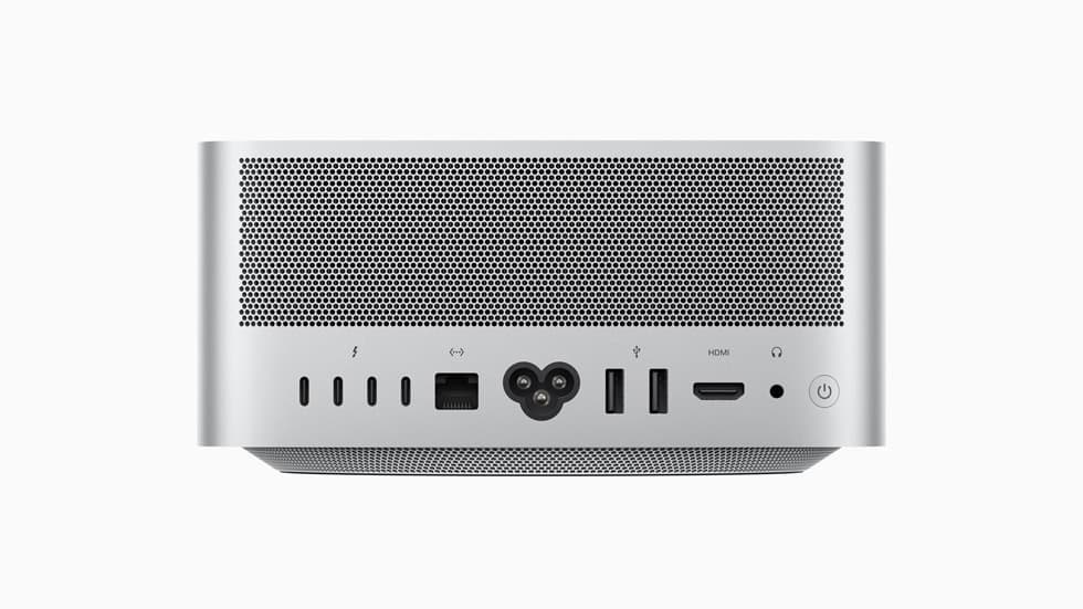 На передней панели компьютера расположены два порта Thunderbolt 5 или USB-C в зависимости от конфигурации и слот для SD-карты, а на задней панели — четыре порта Thunderbolt 5, порт HDMI, порт 10-Gigabit Ethernet, два порта USB-A, разъем для наушников, разъем для шнура питания и кнопка питания. Как и предыдущая модель Mac Studio, новая модель поддерживает Wi-Fi 6E и Bluetooth 5.3.