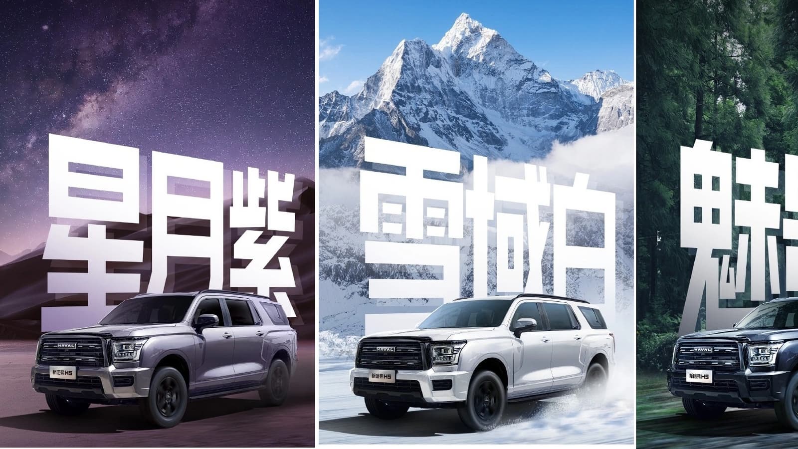 Haval H5 2025 года будет представлен 13 марта. На прошлой неделе стало известно, что машина будет доступна в черном цвете, а сегодня официальный представитель анонсировал четыре новые цветовые схемы для нового автомобиля: Phantom Black, Sky Gray, Snow White и Starry Purple.