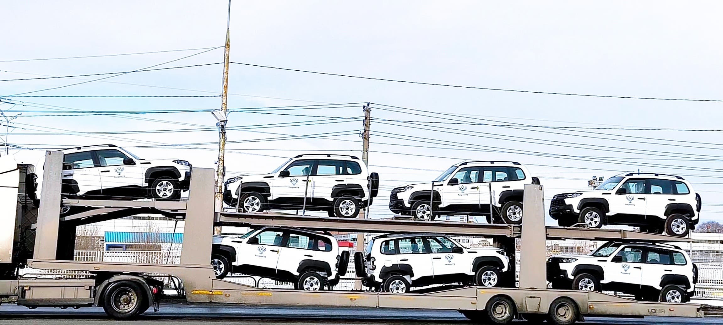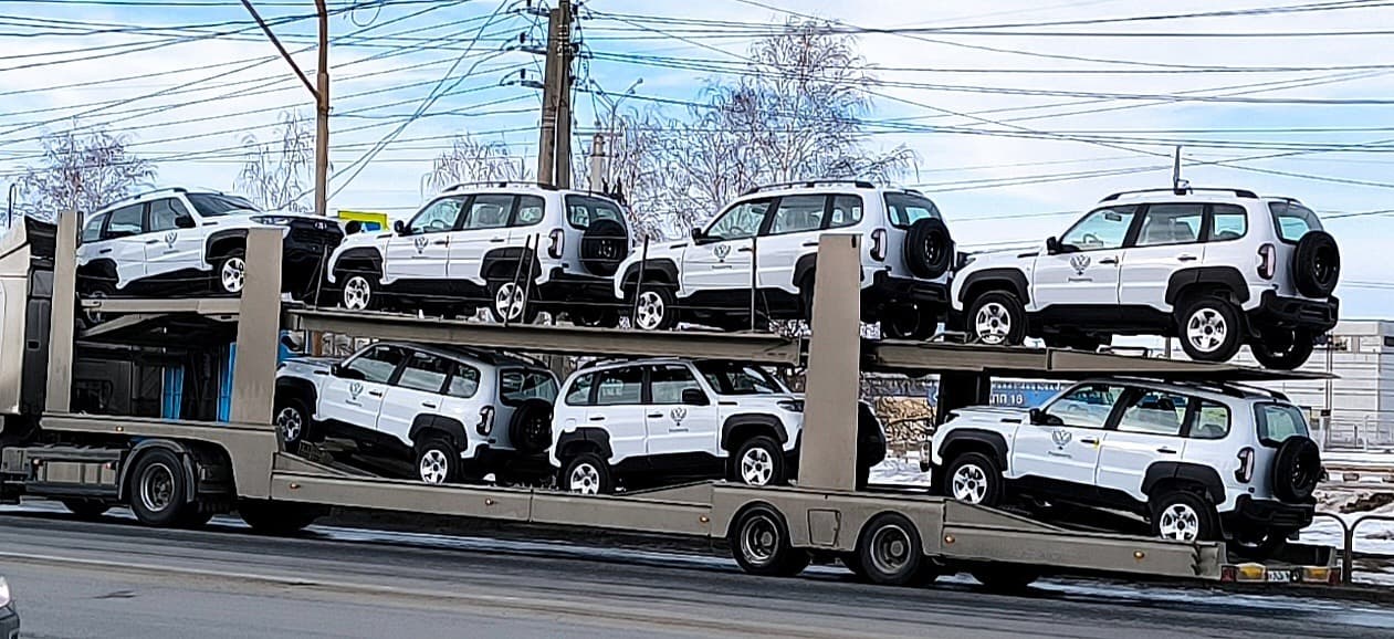 На кадрах видно, что эти машины оснащены рейлингами на крыше, что отличает эту версию от стандартной комплектации. Все автомобили окрашены в белый цвет и оснащены эмблемами ведомства, которые подтверждают государственный заказ.