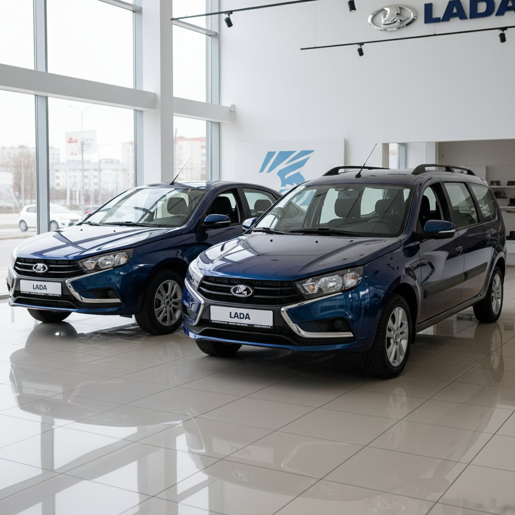 У официальных дилеров Lada появились товарные автомобили семейств Vesta, Granta и Largus, окрашенные в новый глубокий синий металлик под названием «Капитан».