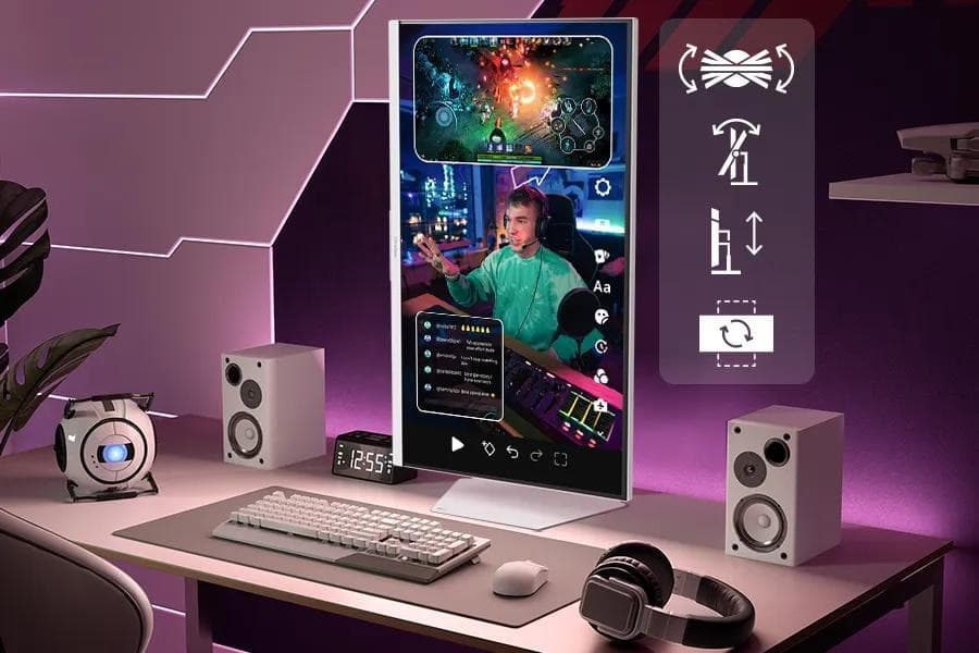 UltraGear 32G810SA-W оснащен двумя портами HDMI 2.1, DisplayPort 1.4, USB-C с передачей мощности 65 Вт, Ethernet и USB-хабом. Подставка регулируется по высоте, наклону, монитор можно повернуть вертикально.