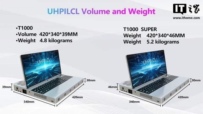 Компания анонсировала два прототипа: T1000 и T1000 Super. Габариты T1000 Super — 420 × 340 × 46 мм, на нужды CPU и GPU блок питания может выдавать до 735 Вт. Версия T1000 тоньше и не поддерживает GeForce RTX 5090.