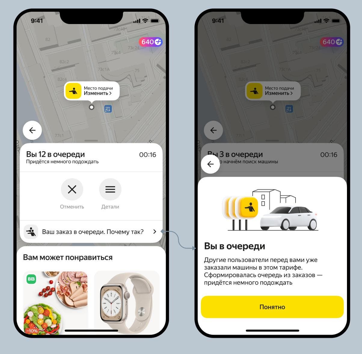 Пассажиры смогут в режиме реального времени видеть свое место в очереди и то, как она продвигается. Во время тестирования в городах-миллионниках виртуальная очередь в месте проведения массового мероприятия могла превышать 100 заказов. В среднем, машина назначалась за 3–10 минут. Если спрос значительно превышает число водителей рядом, а место проведения мероприятия находится в удалении от маршрутов общественного транспорта, то ожидание может быть дольше.