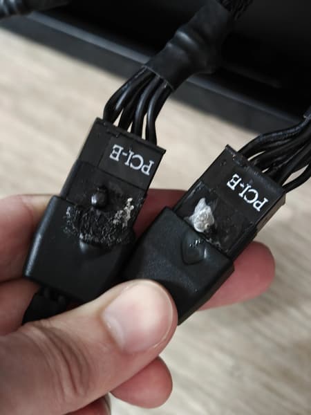 Пользователь Reddit под псевдонимом Hold-821 опубликовал фото, на котором видно оплавленные разъёмы, но не на видеокарте или блоке питания, а на переходнике питания с восьмиконтактного на 16-контактный.