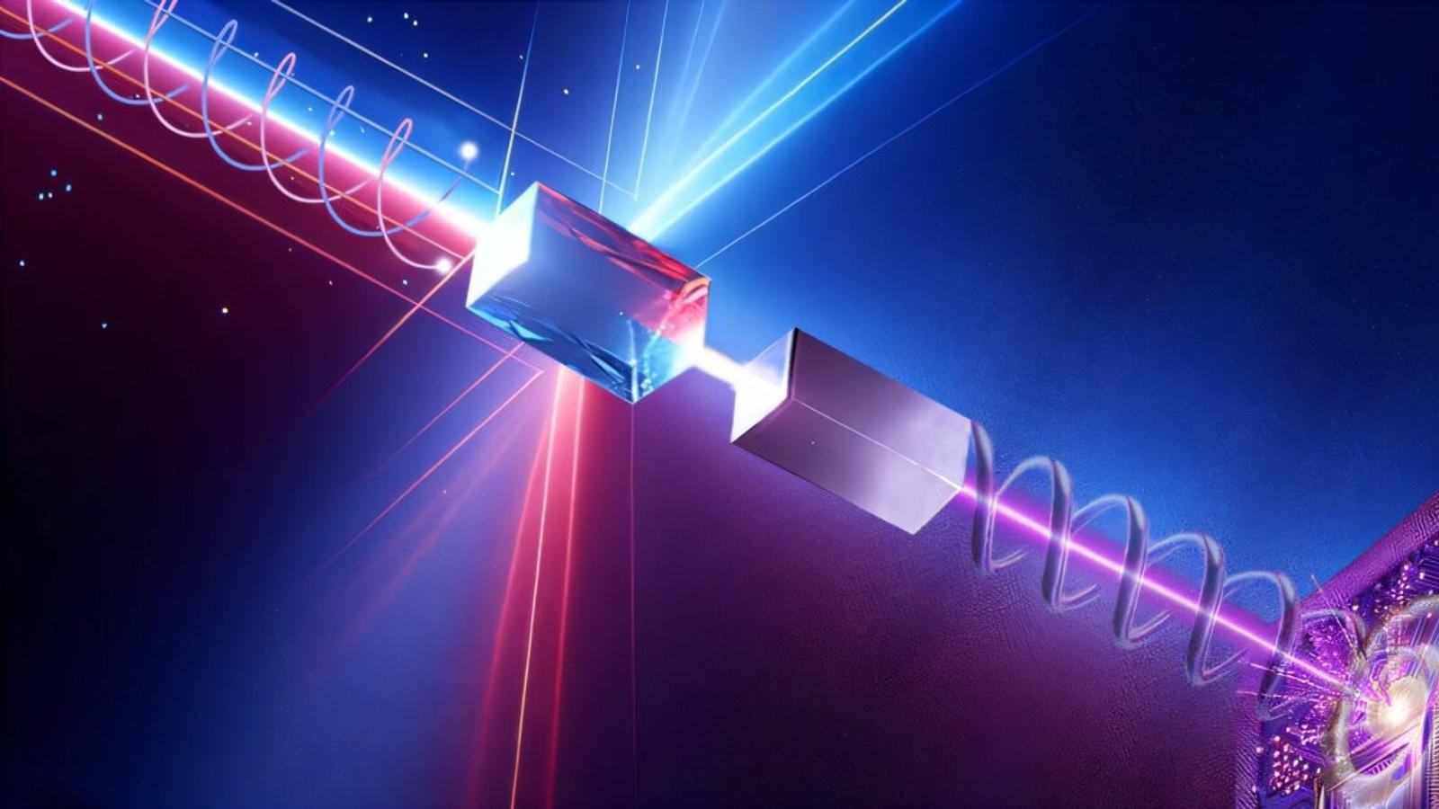 Главная инновация — превращение луча в «световой штопор». Учёные добавили в систему спиральную фазовую пластину, которая закручивает луч 1553 нм перед смешением. Это создало вихревой пучок на 193 нм, несущий орбитальный угловой момент — свойство, позволяющее управлять микрообъектами и передавать квантовую информацию. Подобный результат в твердотельных системах D-UV-диапазона достигнут впервые.