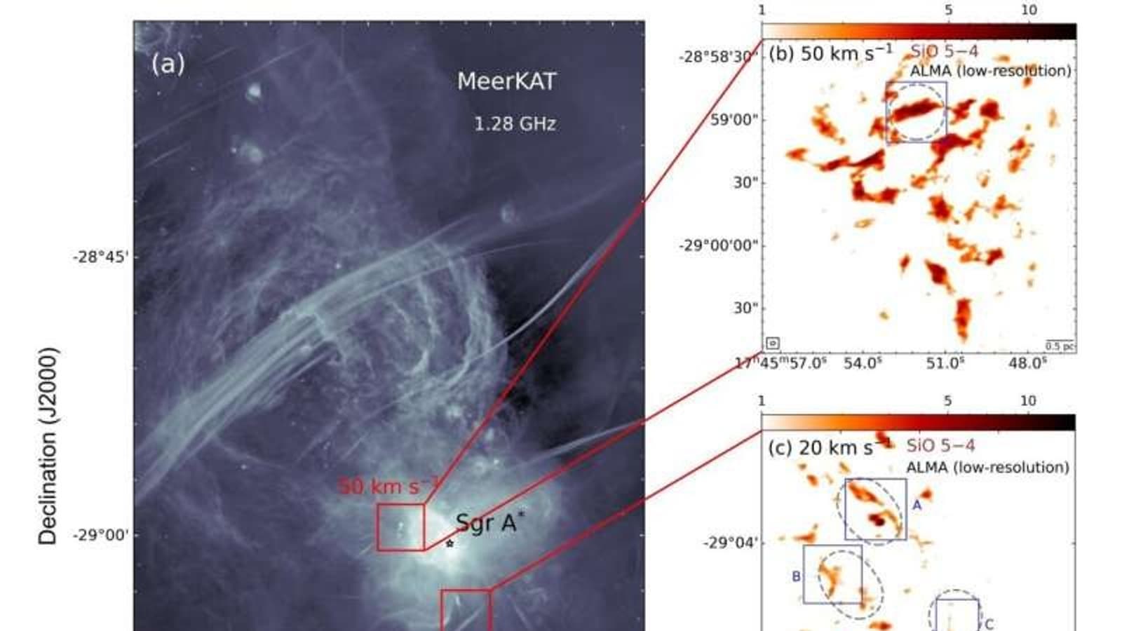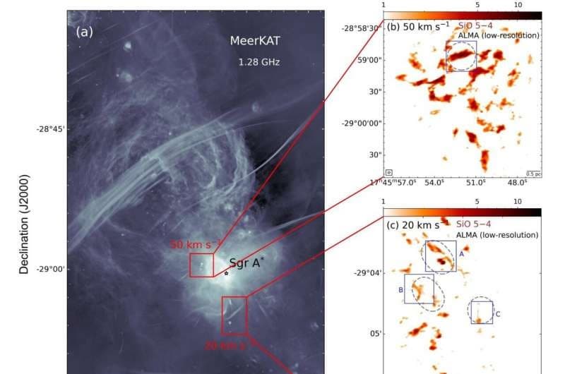 Обнаруженные структуры ведут себя как бурный поток, который внезапно сужается в стремительный ручей, а затем рассеивается, отдавая энергию окружению. Их ширина — всего 0,01 парсека, что сопоставимо с расстоянием от Солнца до Проксимы Центавра, но в условиях галактического ядра эти структуры выглядят чрезвычайно тонкими, словно космические «нити». Основной компонент — молекулы оксида кремния (SiO), указывает на ударные волны. Эти волны, возникающие при столкновениях газовых потоков, «выбивают» молекулы из пылевых облаков, отправляя их в межзвёздное пространство. Учёные сравнивают процесс с циклом воды: испарение, перенос и замерзание. Только здесь вместо капель — целые молекулярные комплексы, включая органические соединения вроде метанола.