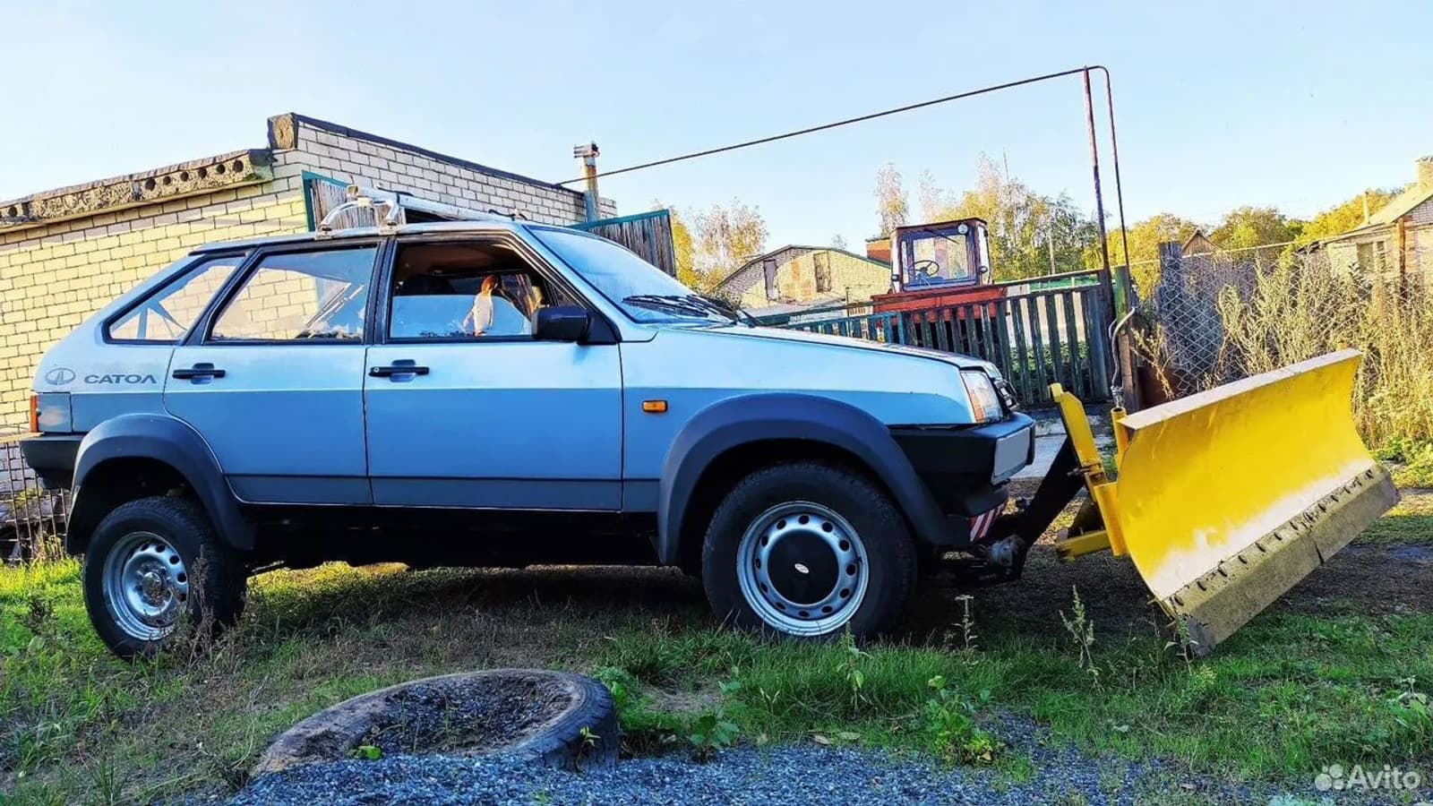 Особенность «Тарзана» — сочетание кузова «Самары» с ходовой частью и трансмиссией «Нивы», для чего использовалась специальная рама. Пятидверный хетчбэк оснащен 1,9-литровым дизельным мотором Peugeot, задними дисковыми тормозами, нестандартными пружинами, амортизаторами и карданными валами. Внешний вид дополняет пластиковый кросс-обвес, а надпись «Сатол» указывает на коммунальное назначение машины — она изначально комплектовалась отвалом для уборки снега. Продавец уверяет, что гидравлика полностью исправна.