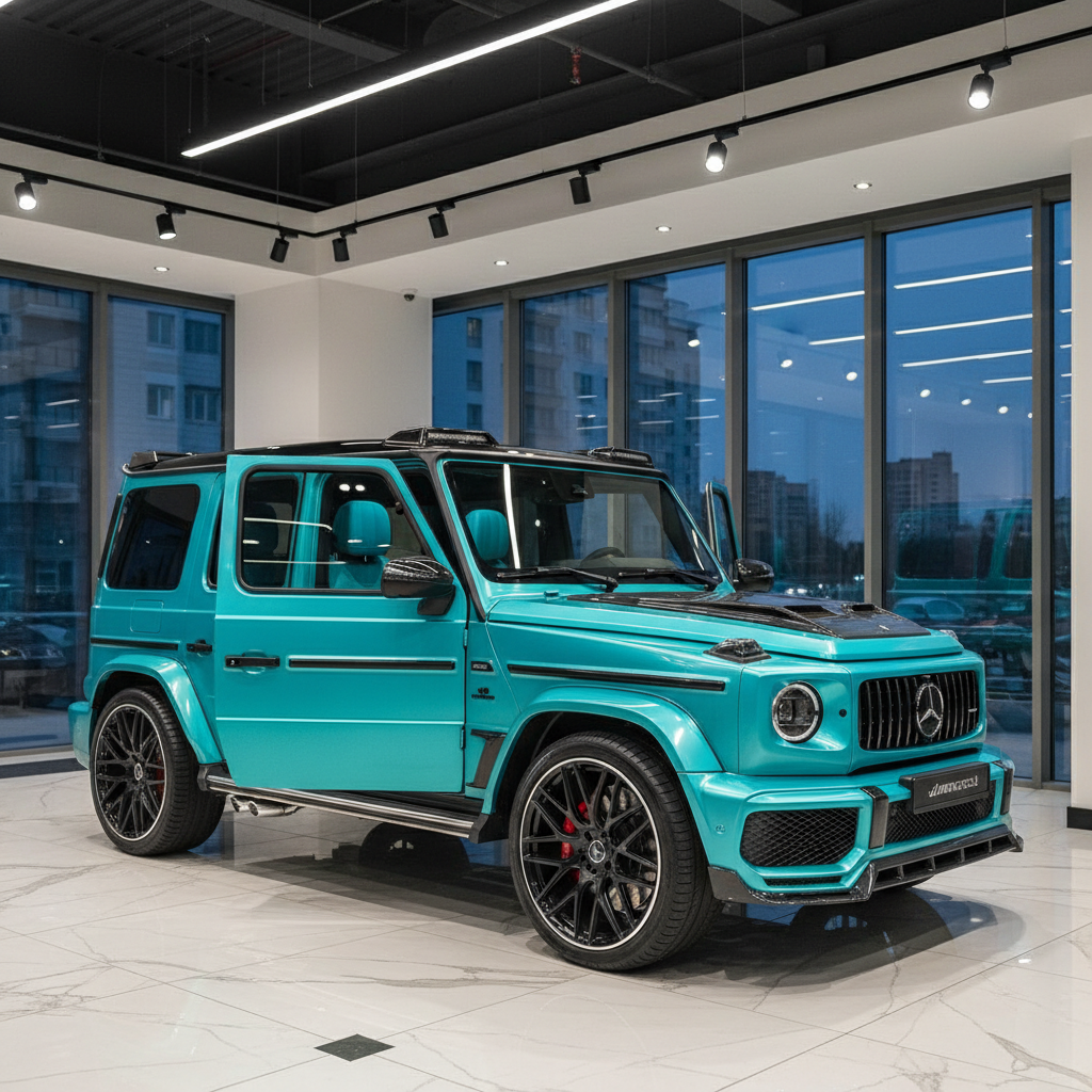 Машина оснащена аэродинамическим обвесом, широкими колёсными арками, коваными карбоновыми элементами, 24-дюймовыми колёсами и спойлером. Четырёхлитровый двигатель V8 форсирован с 585 л.с. до 850 л.с. До 100 км/ч очень бирюзовый «Гелендваген» разгоняется за 3,5 секунды (на секунду быстрее стандартного Mercedes-AMG G 63), максимальная скорость достигает 250 км/ч.