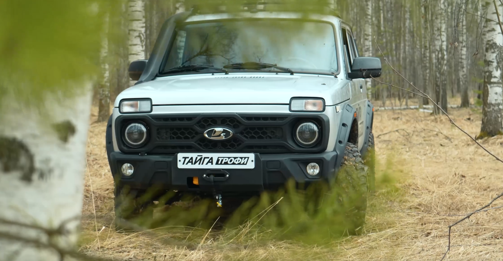 Niva «Тайга Трофи» дополнительно укомплектована электрической лебедкой, экстремальными колесами с агрессивным протектором для сложных условий и полноразмерным запасным колесом, закрепленным на заднем кронштейне.