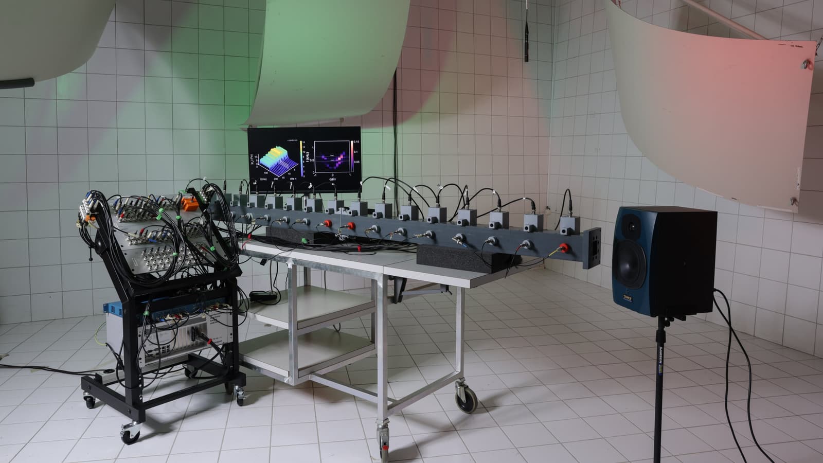Система состоит из 16 модульных блоков, каждый размером с небольшую колонку. Внутри них установлены динамики и микрофоны: первые генерируют звуковые волны, вторые — анализируют их. Если обычные квантовые эксперименты требуют сверхнизких температур и идеальных условий, то здесь всё работает при комнатной температуре.