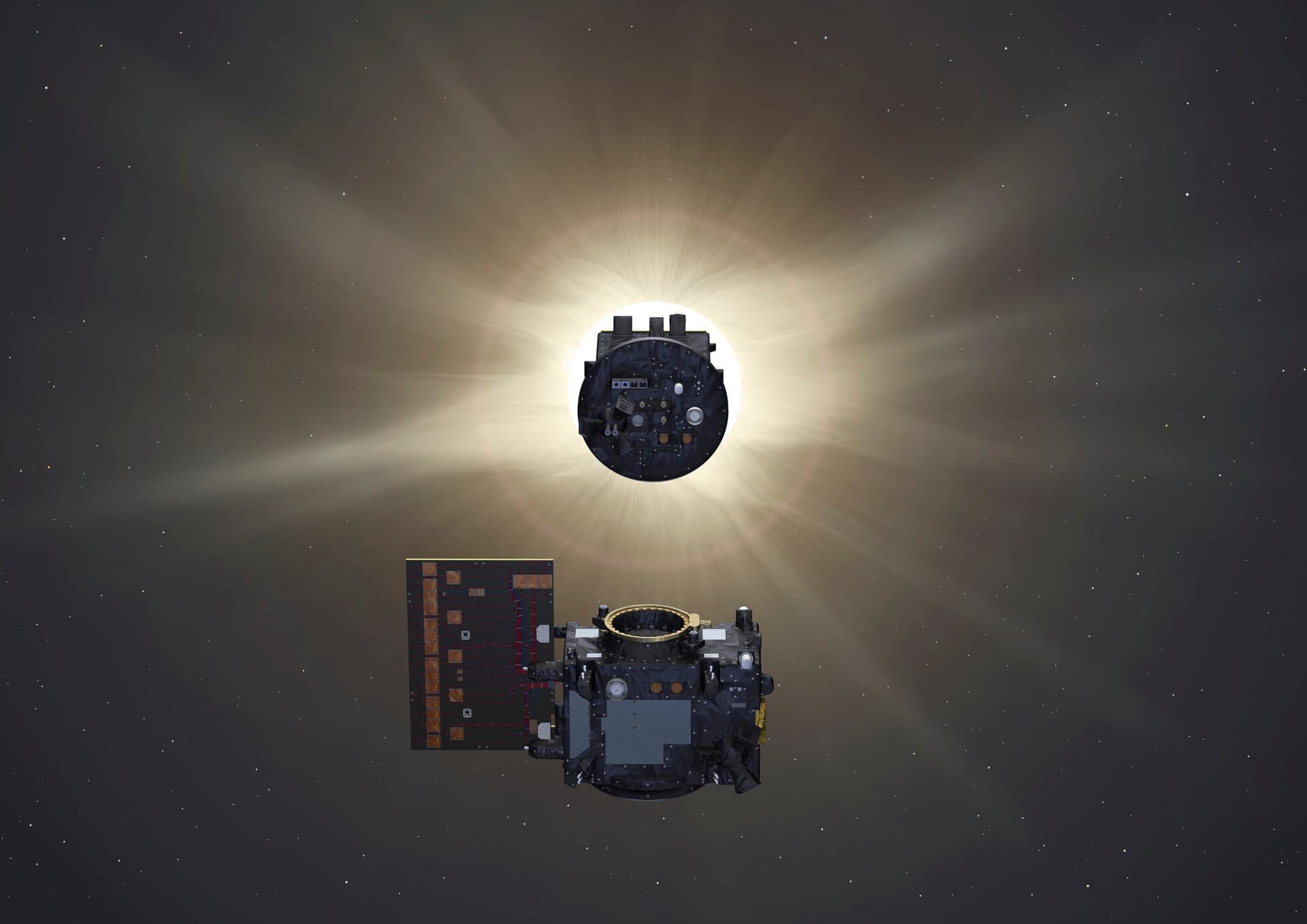 Каждые 20 часов, совершая полный виток вокруг Земли, затенитель — спутник с 1,4-метровым экраном — отбрасывает тень диаметром 5 см на оптический прибор коронографа, блокируя солнечный диск. Это создаёт искусственное затмение, необходимое для наблюдения свечения короны. Раньше подобные исследования требовали использования крупногабаритных конструкций, но теперь ту же функцию выполняют два компактных аппарата.