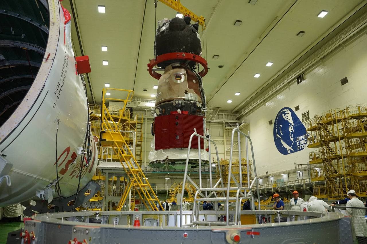 На космодроме Байконур специалисты продолжают готовить корабль «Союз МС-27» к запуску на Международную космическую станцию. Как рассказали в Роскосмосе, «Союз МС-27» уже состыковали с переходным отсеком, который входит в состав космической головной части, механически «связывает» корабль с головным обтекателем и обеспечивает интеграцию командного интерфейса «Союза» в бортовую систему управления ракеты.