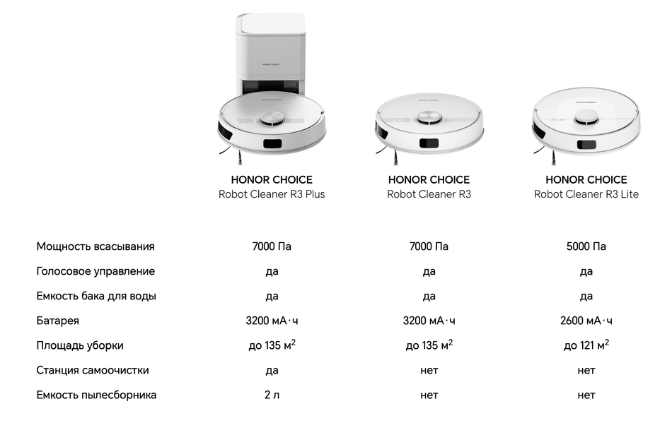 В крупных российских сетях магазинов электроники появились роботы-пылесосы Honor Choice Robot Cleaner R3. Модель доступна в трёх версиях: Robot Cleaner R3 Lite, Robot Cleaner R3 и Robot Cleaner R3 Plus.