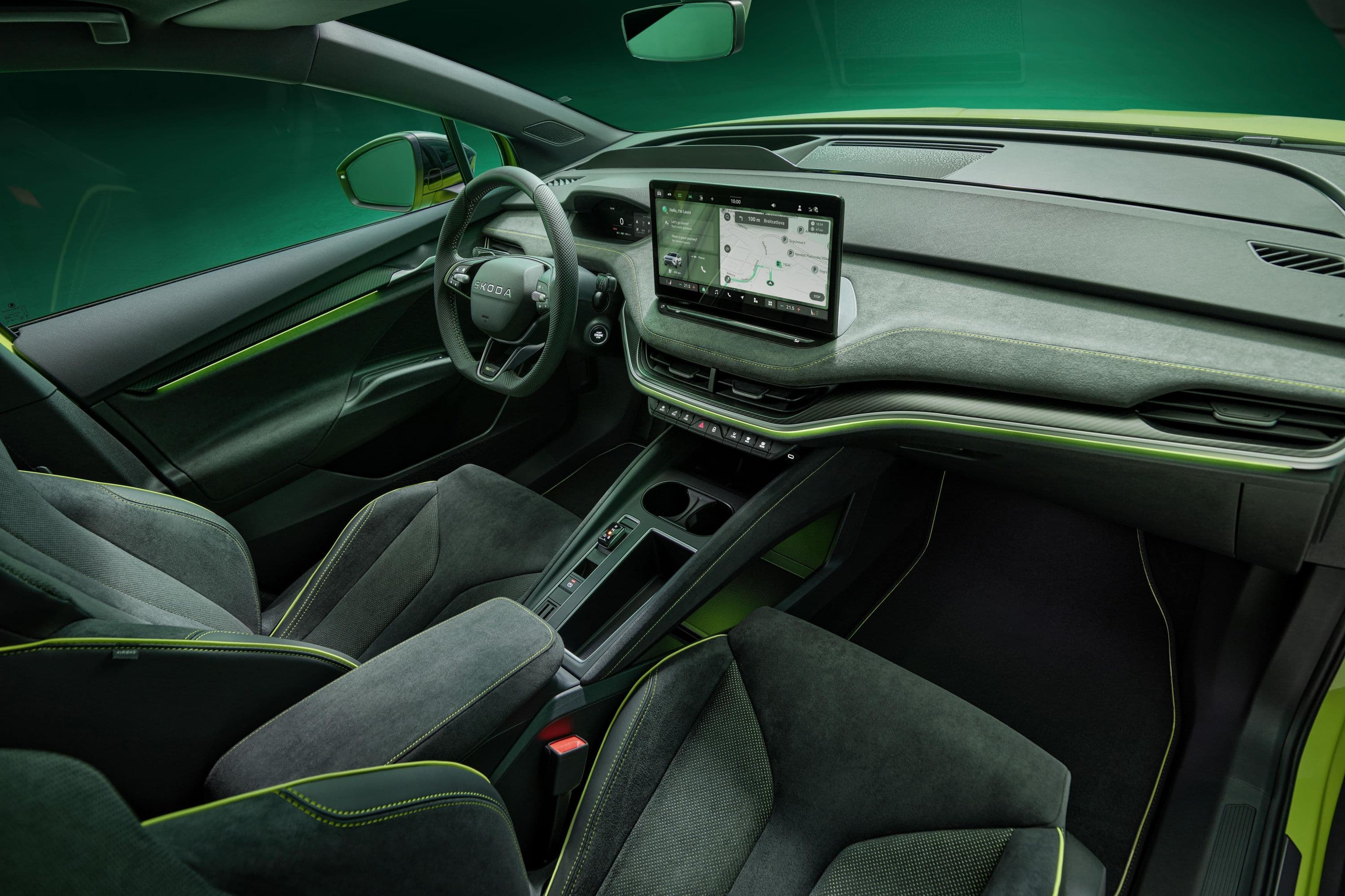 В отличие от обычного Elroq, Elroq RS имеет слегка измененные бамперы, черные глянцевые элементы отделки, перенастроенную подвеску с уменьшенным на 16 мм клиренсом и особый цвет кузова Mamba Green.