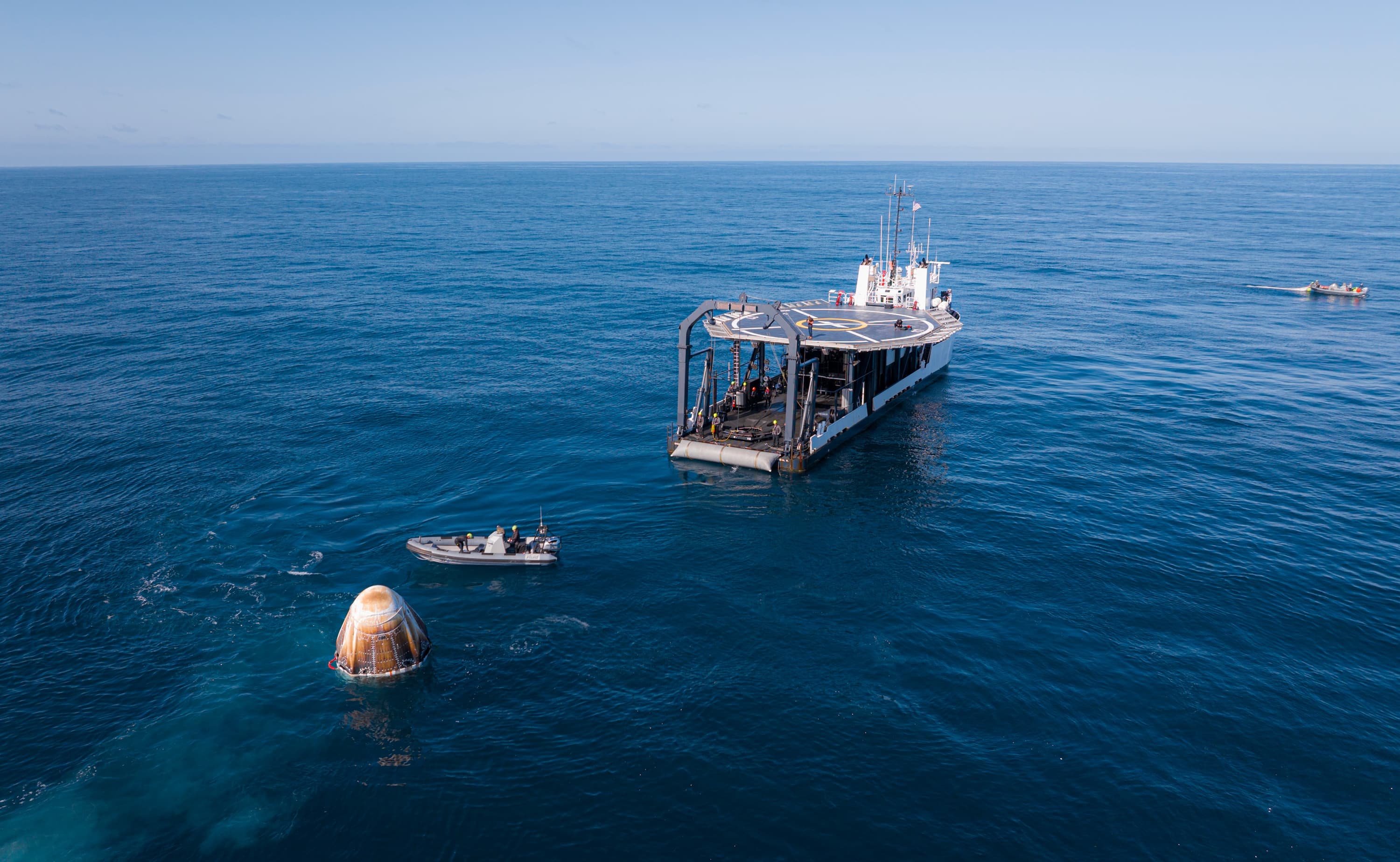 Экипаж миссии Fram2, состоящий из четырех человек, стал первым, кто исследовал Землю с орбиты над полюсами. После приводнения астронавты покинули капсулу без посторонней помощи.