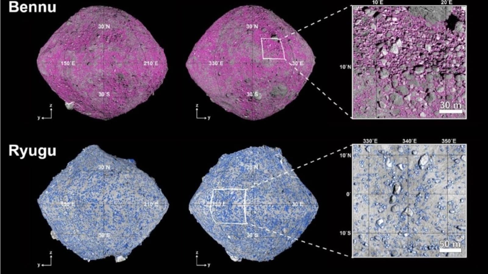 В основу исследования легли снимки, полученные японским зондом «Хаябуса-2» (астероид Рюгу) и американским аппаратом OSIRIS-REx (астероид Бенну). Учёные обучили нейросеть на данных о 70 000 земных камней и астероидов, создав инструмент для автоматического анализа. После обработки 10 000 высококачественных изображений система идентифицировала 20 000 объектов диаметром от 1 метра на Рюгу и 180 000 — на Бенну.