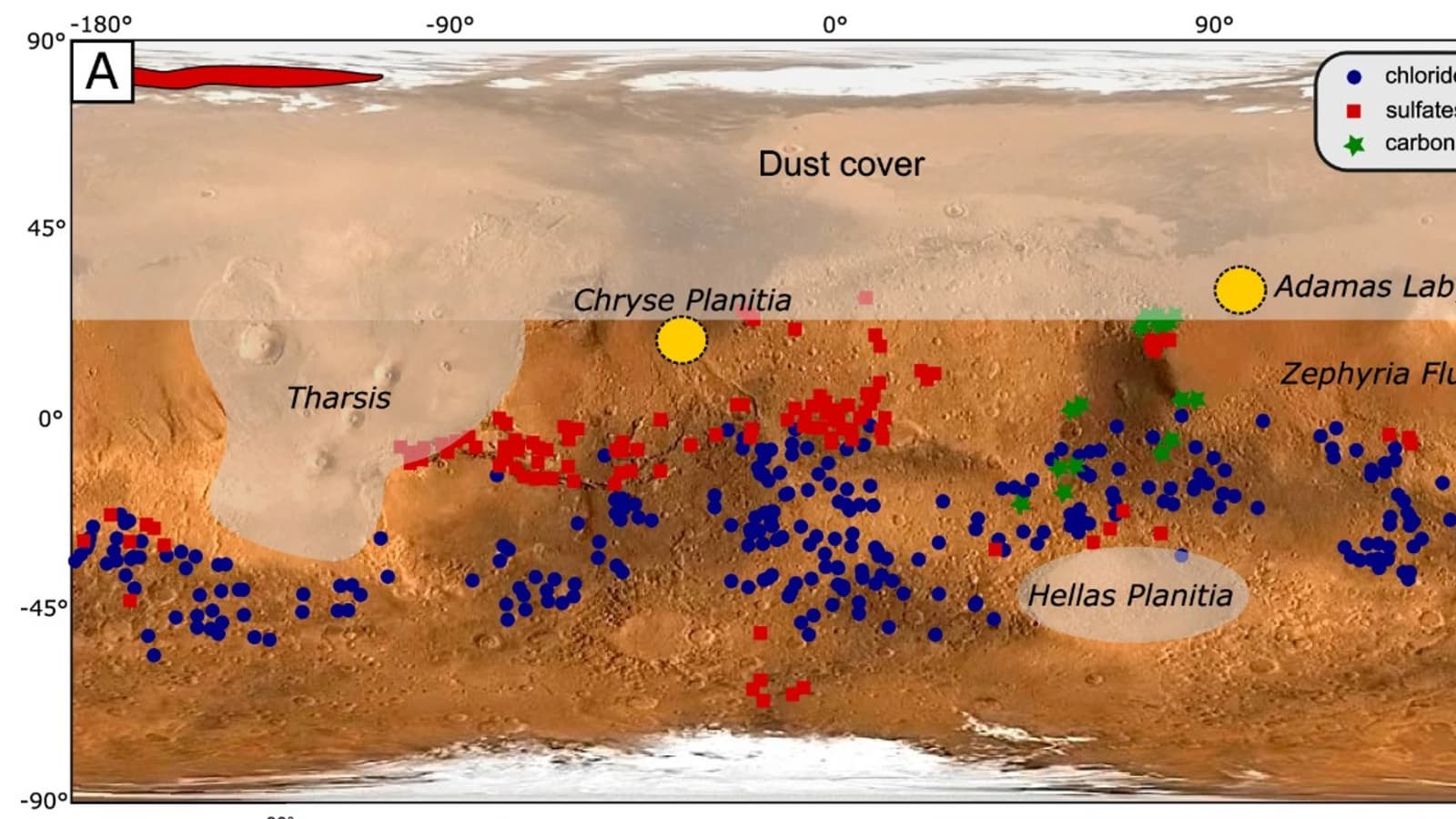 Учёные из Института геофизики Чешской академии наук и Университета Осло провели эксперименты в условиях, имитирующих марсианские: температуру −25°C и давление, в 150 раз ниже земного. Они проверили смесь грязи с добавлением тех же солей, что обнаружены на Марсе ранее, — сульфата магния, хлорида натрия, сульфата натрия и кальция. Результаты показали, что раствор с 10% сульфата магния или 2,5% хлорида натрия позволяет грязи сохранять текучесть, формируя структуры, аналогичные земным грязевым вулканам.