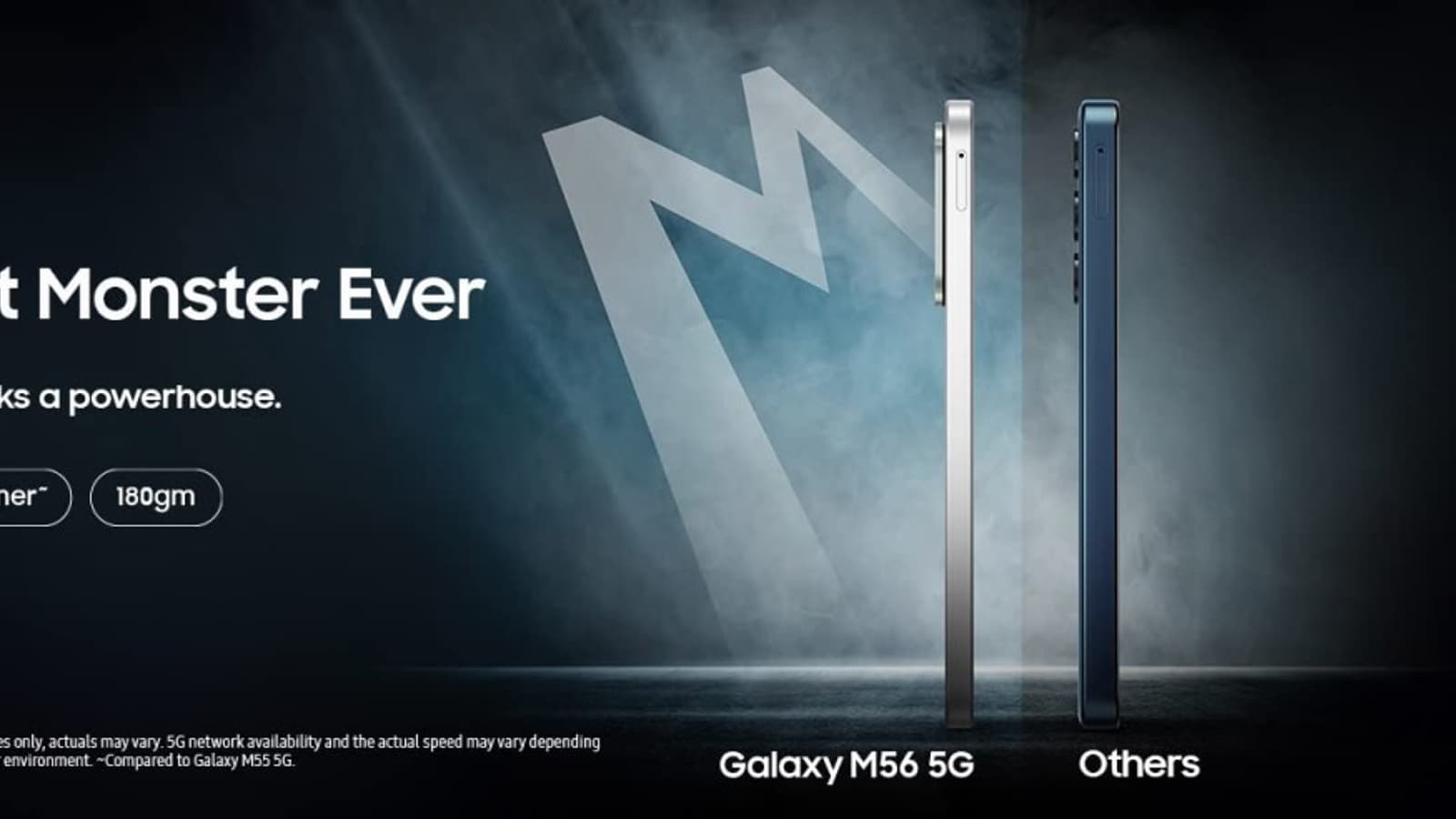 Речь о Galaxy M56, который компания называет самым тонким монстром автономности. Правда, ёмкость аккумулятора пока не известна, но зато Samsung хвастается, что смартфон имеет толщину всего 7,2 мм и весит всего 180 г.
