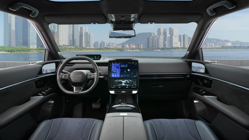 P7 выделяется уникальным дизайном с изогнутой линией крыши, выдвижными дверными ручками и камерами вместо боковых зеркал. Его фары и задние фонари отличаются от S7. Салон включает 9,9-дюймовую приборную панель, центральный экран из двух дисплеев (12,8 и 10,25 дюйма) и 41,9-дюймовый проекционный дисплей. Система поддерживает Apple CarPlay, Baidu CarLife и Huawei HiCar, есть аудиосистема Bose с 16 динамиками и комплекс Honda Sensing 360+.