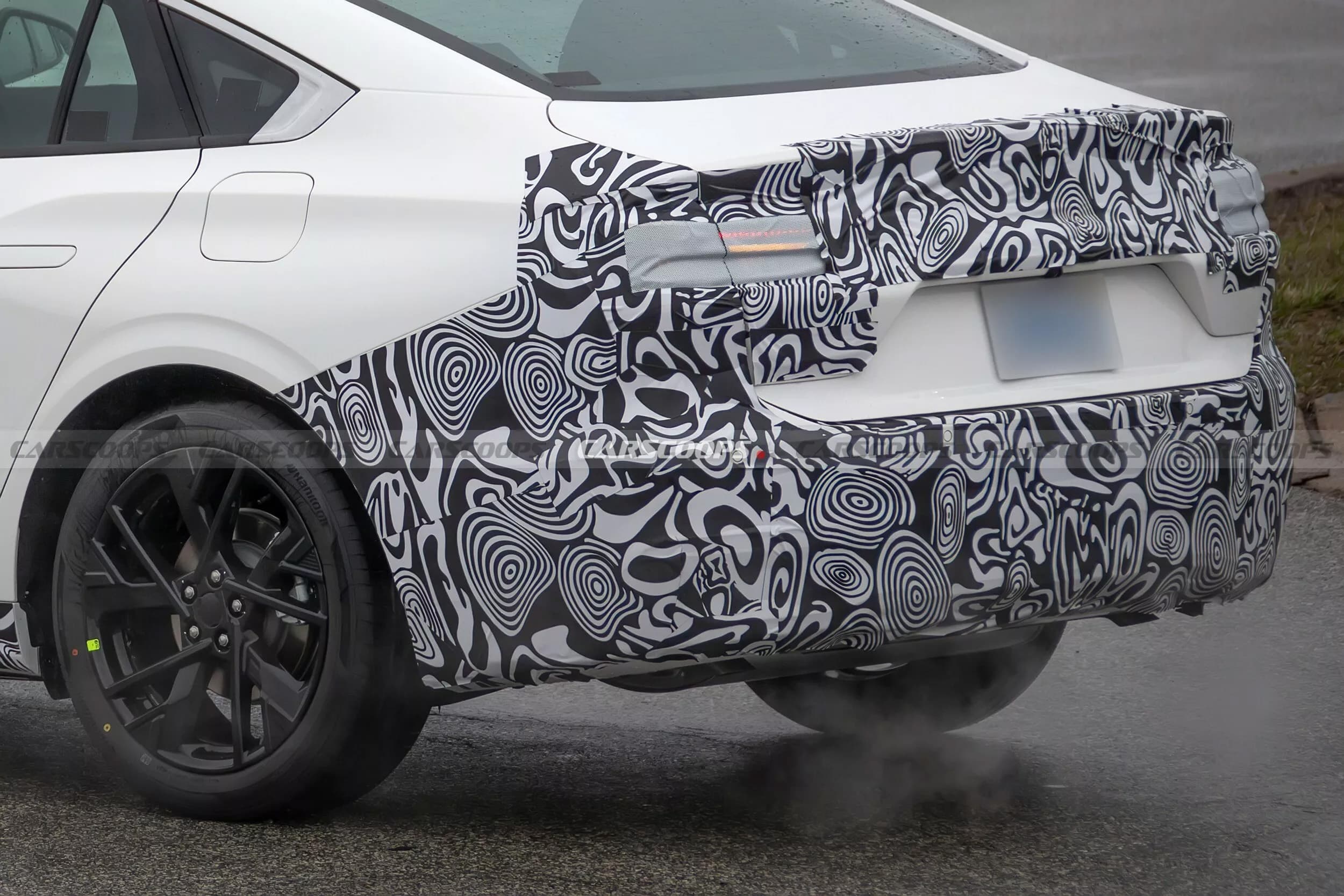 Сзади изменения менее заметны: ожидаются новые фонари, обновлённый бампер и доработанный диффузор. Интерьер закамуфлирован, это указывает на то, что и внутри машина обновится. Нынешний Mondeo, напомним, оснащен цифровой панелью приборов с экраном диагональю 12,3 дюйма и медиасистемой с 27-дюймовым экраном.