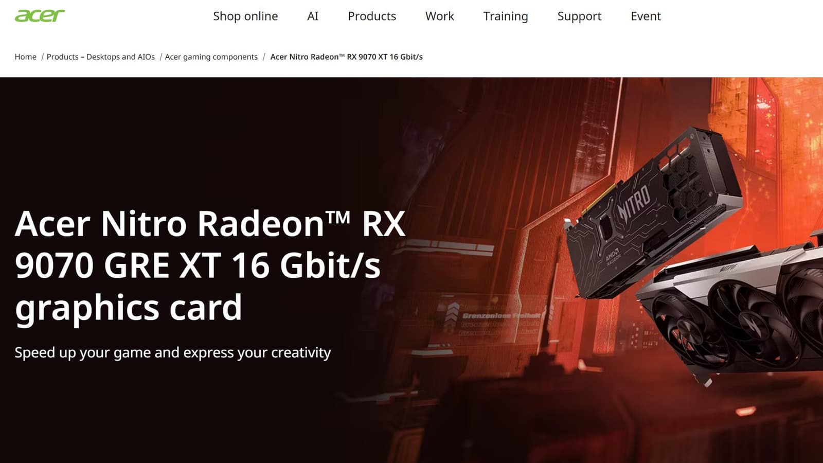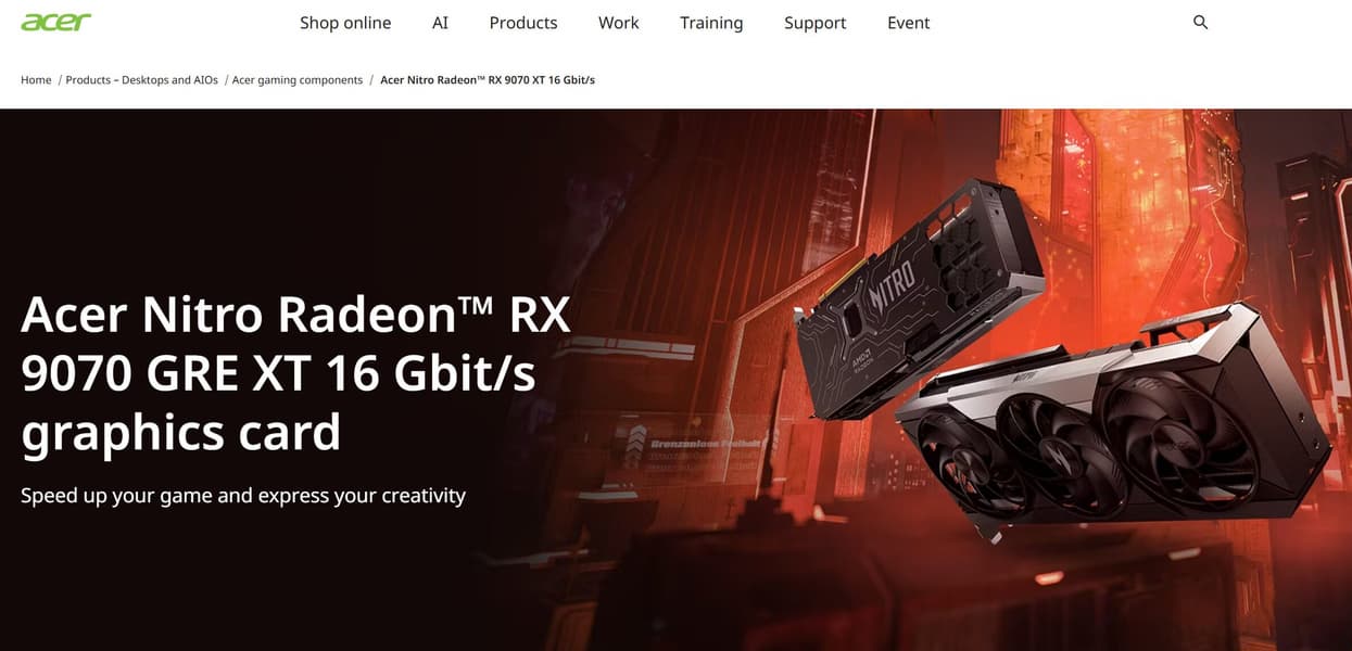 У Acer модель называется Radeon RX 9070 GRE XT, что несколько странно, так как, во-первых, все предыдущие модели GRE у AMD всегда не имели никаких дополнительных символов в названии, а во-вторых, недавние утечки тоже нам говорили просто об RX 9070 GRE.