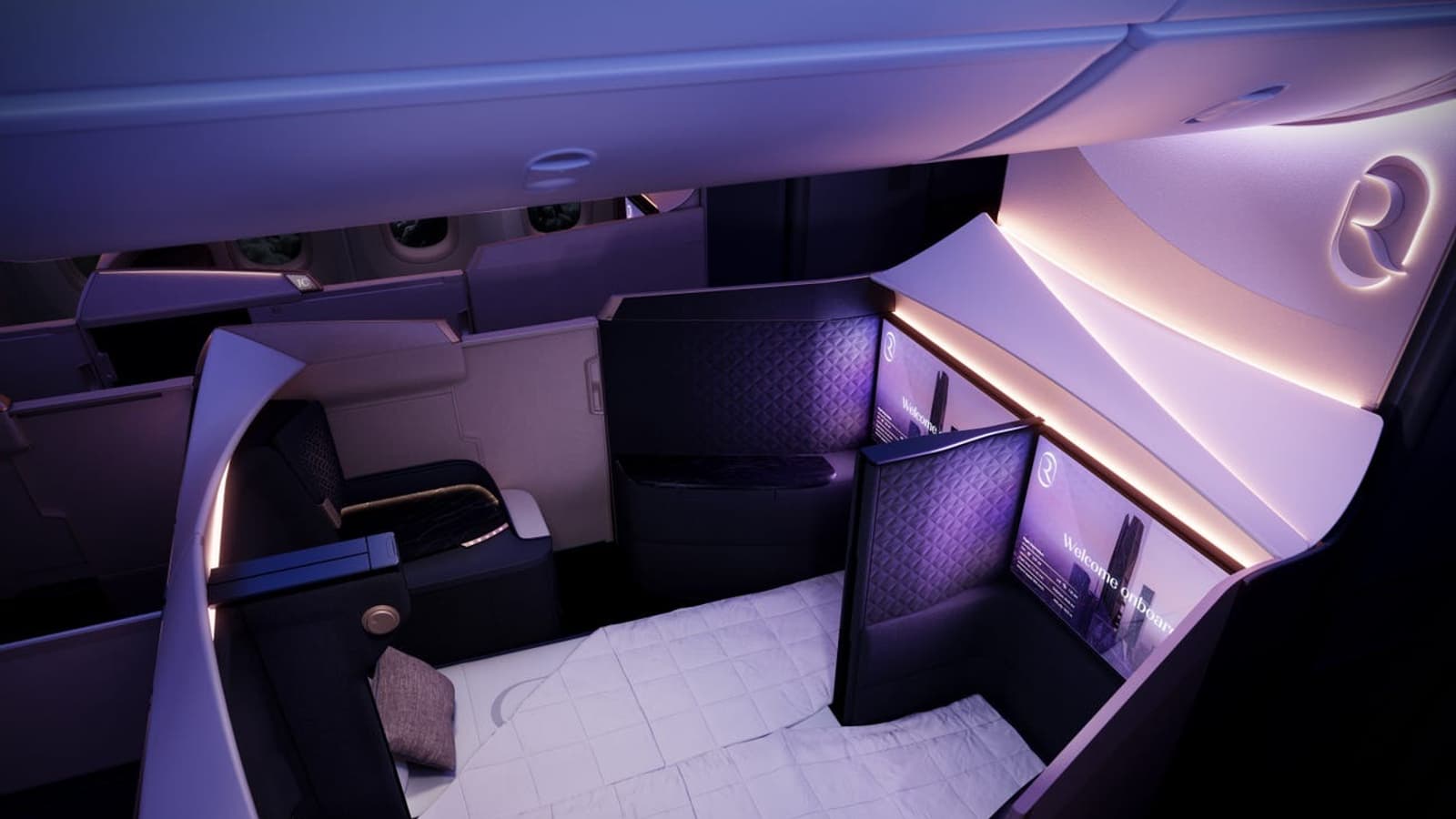 Флагманский «Business Elite» предлагает четыре люкса с трансформируемой перегородкой, создающей двуспальное пространство. Помимо 32-дюймовых экранов — крупнейших в бизнес-классе — каждая кабина оснащена 22-дюймовым 4K OLED-телевизором, раздвижной дверью и набором портов (два USB-C, один USB-A). Кресла Safran Unity с памятью формы раскладываются в кровать длиной 198 см, а звуковая система Devialet Euphony, ранее опробованная Japan Airlines в 2023 году, обеспечивает иммерсивный аудиоопыт.