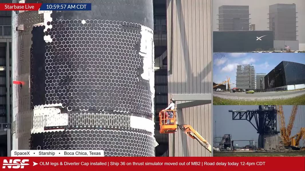 Космический корабль Starship 36, верхняя ступень гигантской ракеты Starship от SpaceX, выведен из сборочного ангара и готовится к транспортировке на тестовую площадку Мэсси (Masseys Test Site) в Техасе для проведения криотестов.