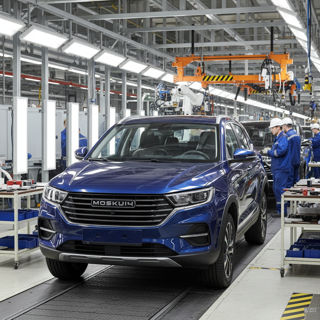 На московском автозаводе «Москвич» началась сборка нового кроссовера «Москвич 5». Изображения машины опубликовал ресурс Motor. На то, что автомобиль произведен в России на московском автозаводе, указывает идентификационный номер (VIN) с кодом X7LJ*********0108. На кузове кроссовера размещены шильдики, идентифицирующие его как «Москвич 5».