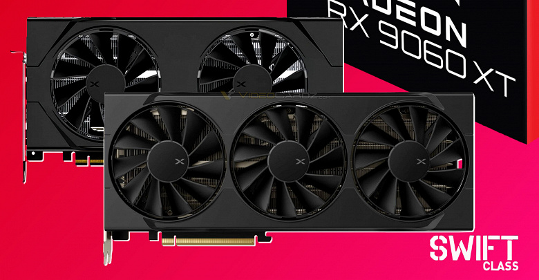 На момент публикации данных в каталоге Amazon были представлены только видеокарты серии XFX Swift, которые не относятся к топовым кастомным моделям в линейке компании. Тем не менее, они отличаются заводским разгоном: тактовая частота GPU достигает 3320 МГц (референсная — 3230 МГц). XFX Radeon RX 9060 XT с 8 ГБ памяти оснащена двухвентиляторной системой охлаждения, версия с 16 ГБ имеет три вентилятора.