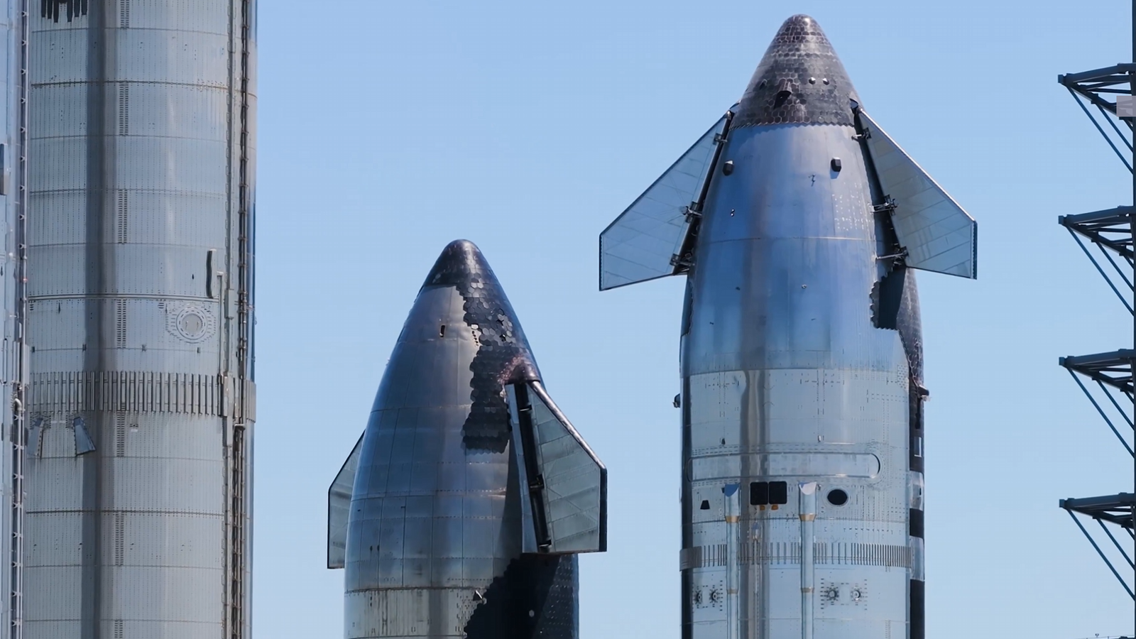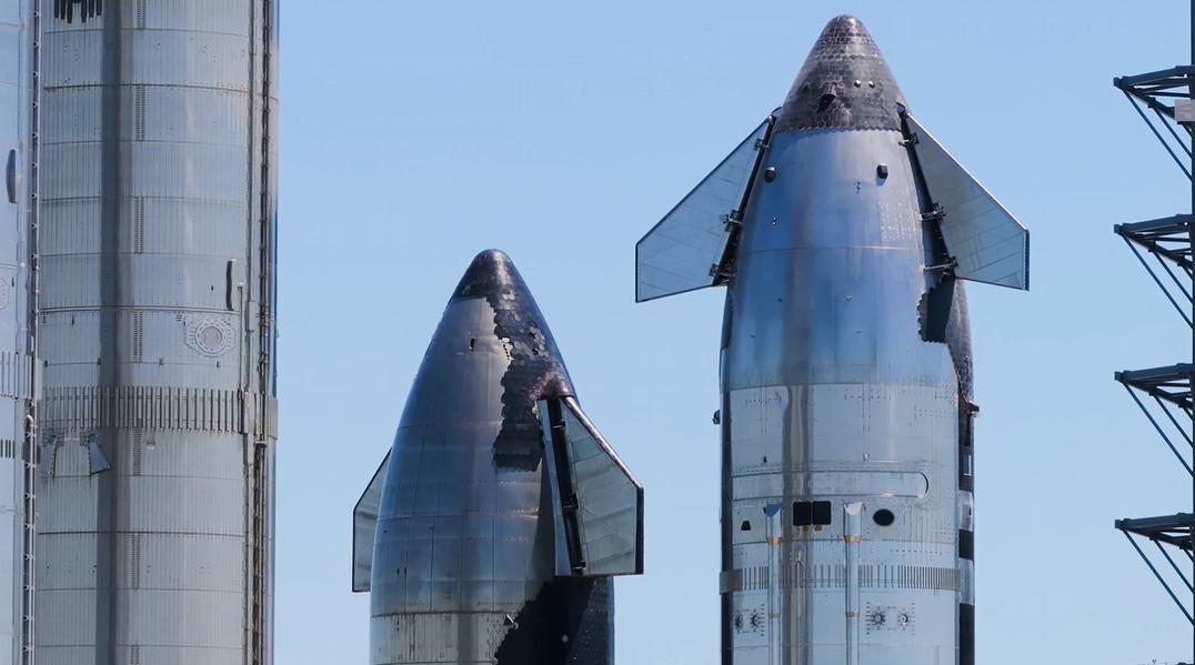 Недавно проведённый минутный прожиг двигателей корабля прошёл успешно, а ускоритель Super Heavy уже отправился из ангара на стартовую площадку.
