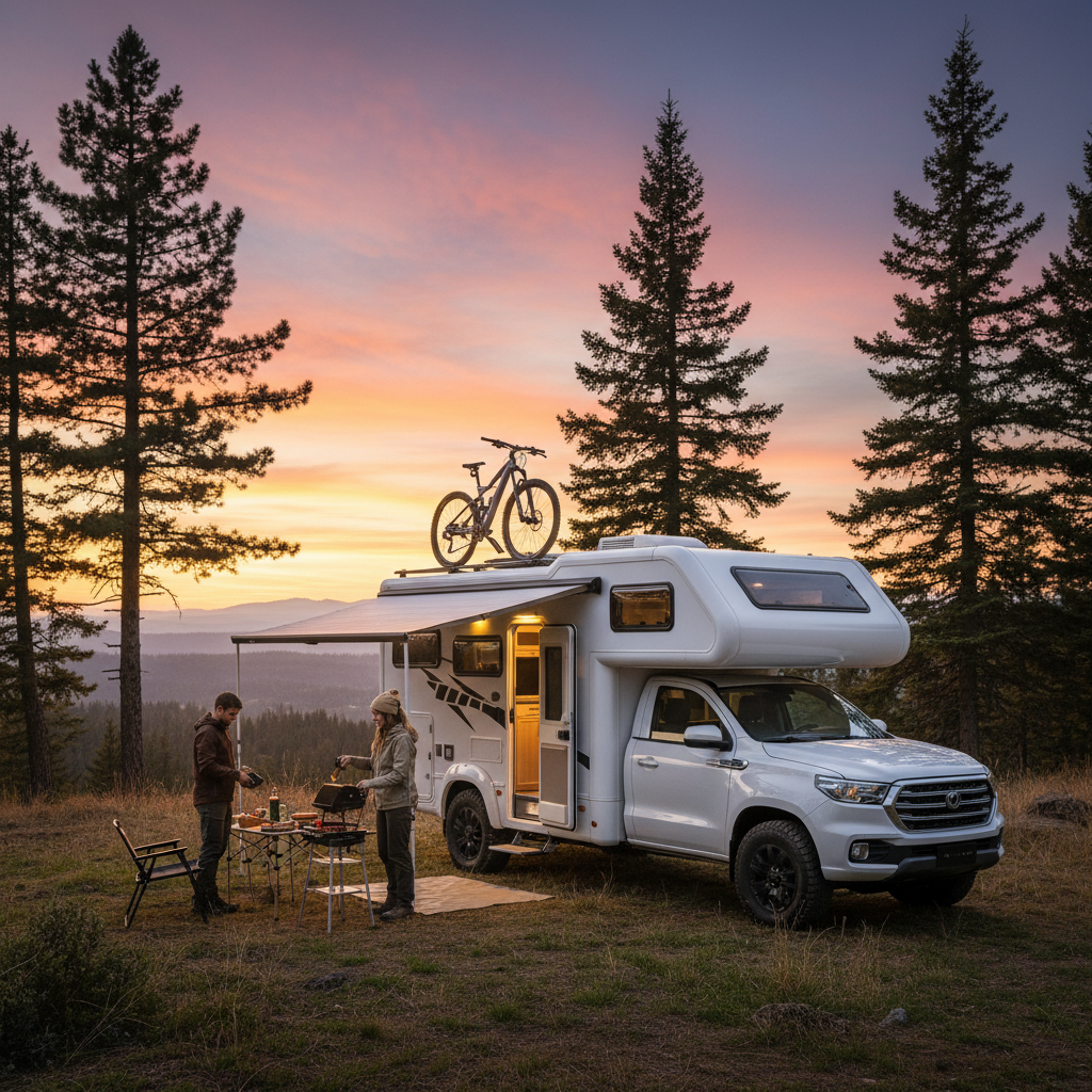 Автодом построен на базе пикапа с однорядной двухместной кабиной. Жилой модуль рассчитан на 4 человек и имеет два спальных места. В оснащении — варочная панель, раковина, холодильник, печь СВЧ, стиральная машина, санузел с душем и климат-контроль в жилом отсеке.