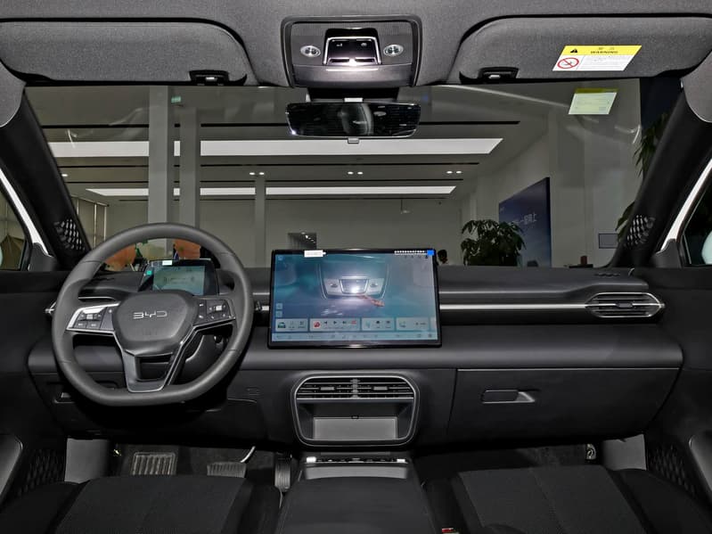 В салоне установлена небольшая «парящая» цифровая приборная панель, медиасистема с экраном диагональю 15,6 дюйма, трехспицевый многофункциональный руль. Есть электропривод ручного тормоза, панорамная крыша, тепловой насос, система дистанционного управления автомобилем (открытие и закрытие дверей/запуск и выключение кондиционера/включение фар и звукового сигнала).