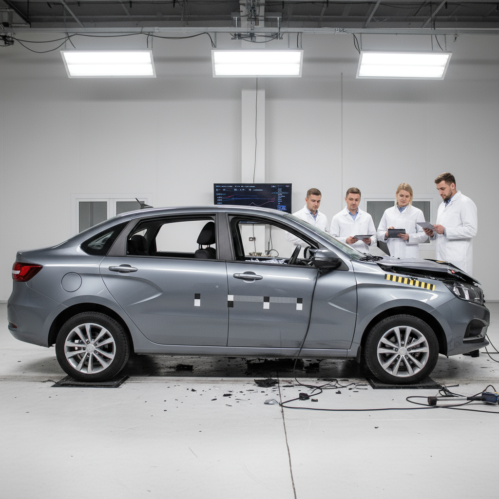 В краш-тесте разбили одну из топовых версий Lada Iskra — машина оснащена полноценным многофункциональным рулем и медиасистемой с сенсорным экраном. А вот форма водительского подголовника очень странная.