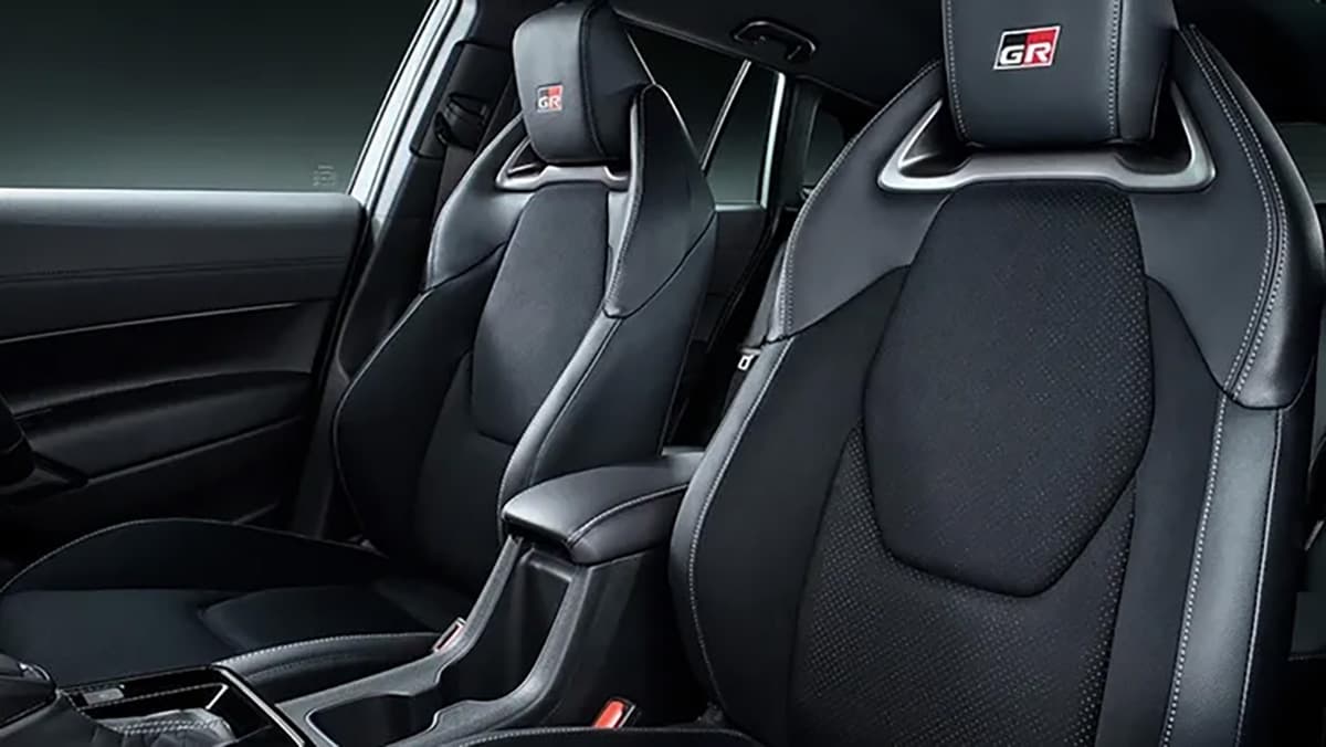 Внешне Toyota Corolla Cross GR Sport отличается модернизированной радиаторной решеткой с шильдиком GR, эксклюзивными 19-дюймовыми алюминиевыми колесными дисками, красными тормозными суппортами. Внутри автомобиля установлены спортивные сиденья с вышитым логотипом GR Sport на подголовниках.