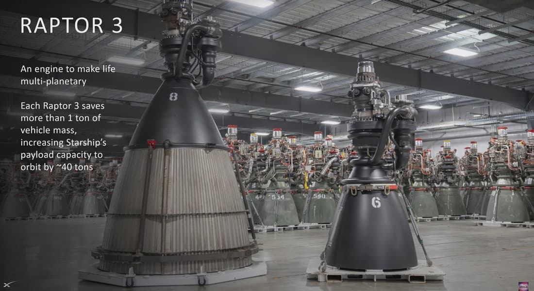 Глава SpaceX рассказал, что чтобы сделать двигатель таким, какой он есть сейчас, пришлось упростить много частей конструкции, включить вторичные жидкостные контуры и электронику в структуру самого двигателя, чтобы все было защищено. В итоге эффективность Raptor 3 превосходит эффективность любых ранее созданных ракетных силовых установок.