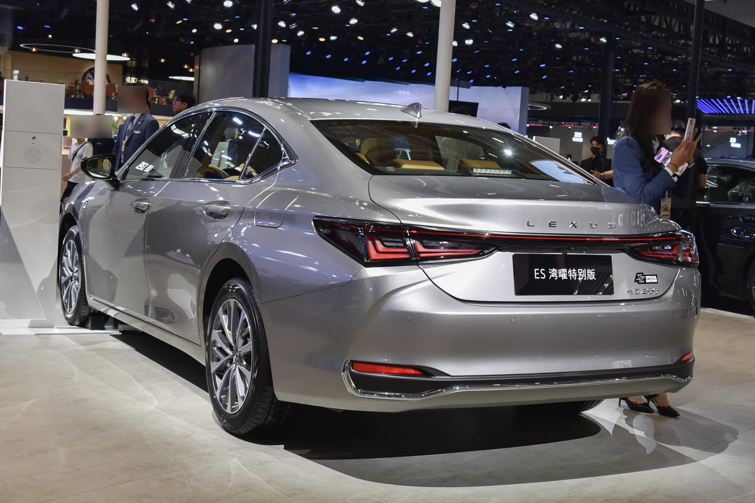 Lexus ES 200 Taiwan Special Edition получил решетку радиатора, окрашенную в черный глянец, такой же глянец на корпусах зеркал. Колесные диски — многоспицевые двухцветные 17-дюймовые, цвет особый — серебристый titanium silver.