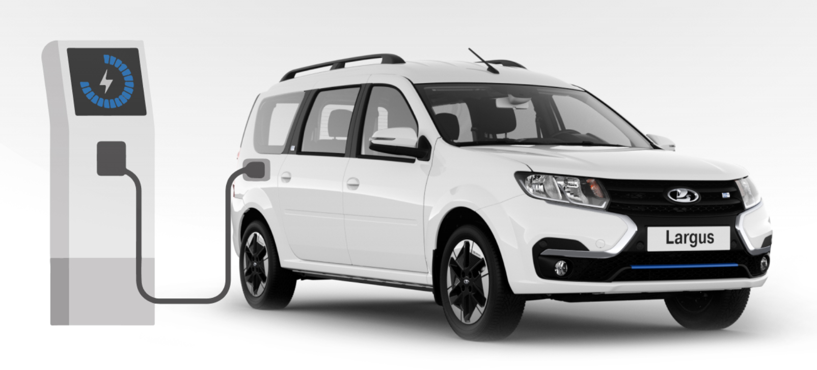 Внешне автомобиль напоминает бензиновый Lada Largus, но у него отсутствует выхлопная труба, а элементы, такие как синий молдинг на бампере и оригинальные диски, подчёркивают электрическую силовую установку.