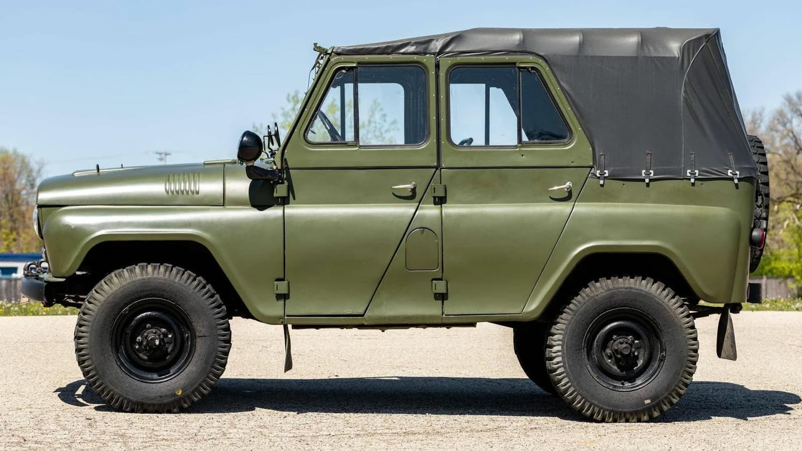 В Ленинградской области на продажу выставили армейский УАЗ-469 1983 года выпуска с пробегом всего 12 368 км. Машина окрашена в типичный для нее темно-зеленый цвет и оснащена 2,5-литровым карбюраторным мотором мощностью 75 л.с. в сочетании с 4-ступенчатой механической коробкой передач. Привод, естественно, полный.