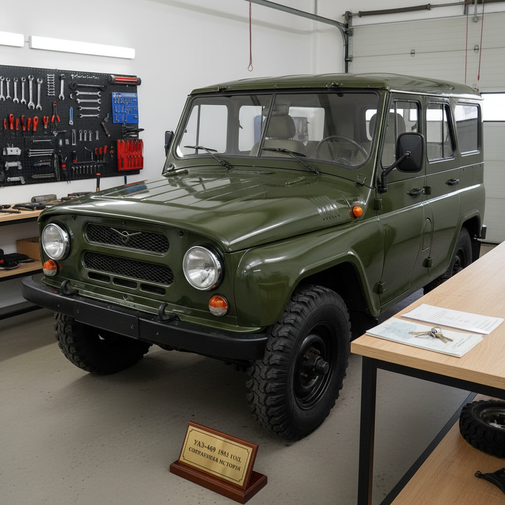 В Ленинградской области на продажу выставили армейский УАЗ-469 1983 года выпуска с пробегом всего 12 368 км. Машина окрашена в типичный для нее темно-зеленый цвет и оснащена 2,5-литровым карбюраторным мотором мощностью 75 л.с. в сочетании с 4-ступенчатой механической коробкой передач. Привод, естественно, полный.
