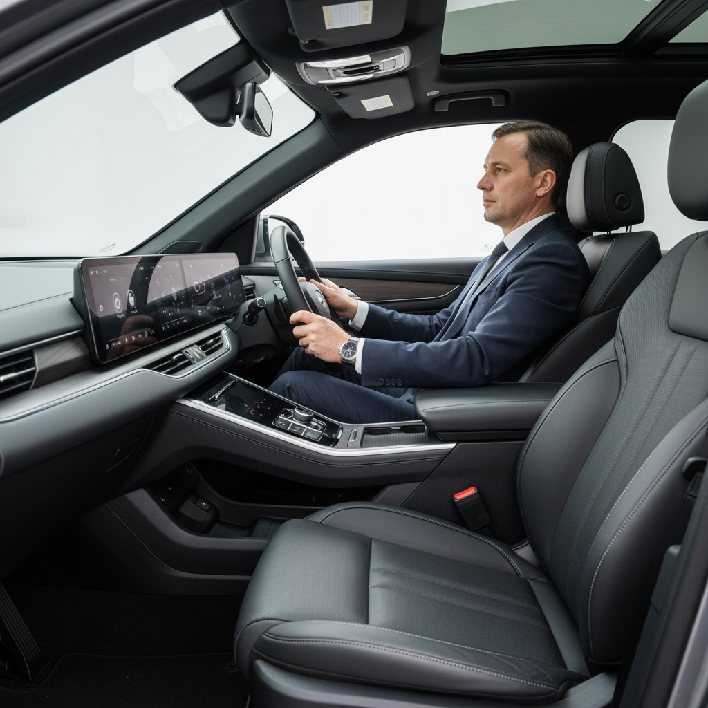 «Мне с моими габаритами очень комфортно. Всегда обращаю внимание на положение руля и панели приборов — не закрывается. Положение комфортное для посадки — регулируется подкачка поясницы, подголовник недалеко от головы, ты сидишь влитой в сиденье», — рассказал он.