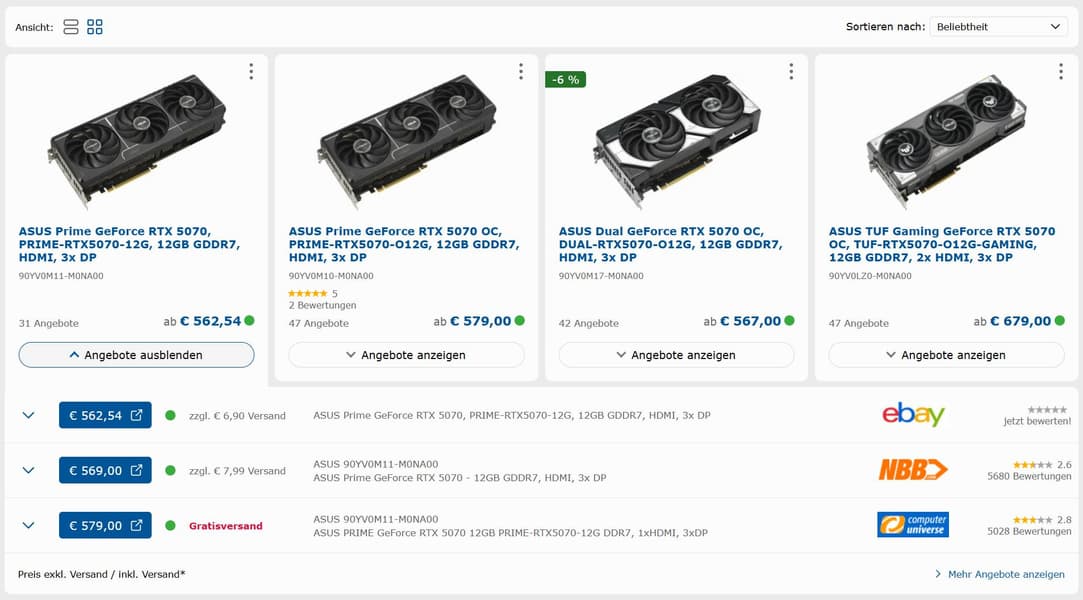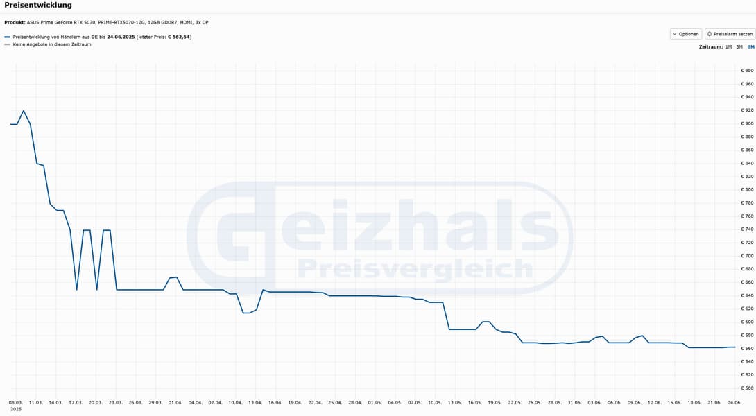 В США GeForce RTX 5070 можно запросто купить за 600 долларов — как на Amazon, так и на Newegg. Данные европейского агрегатора цен Geizhals говорят о том, что с начала марта по нынешний момент стоимость GeForce RTX 5070 опустилась с 900 евро до примерно 550 евро.