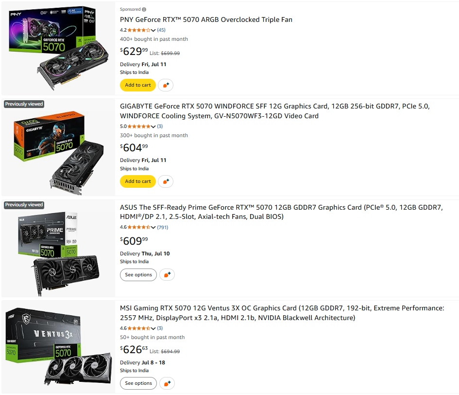 Магазин PC Koubou предложил Gainward GeForce RTX 5070 Python III всего за 89 980 иен — примерно 620 долларов. Это самая низкая стоимость ускорителя с момента выхода на рынок Японии, и она почти сравнялась по цене с GeForce RTX 5070 в США. На Amazon Japan обнаружился еще один вариант GeForce RTX 5070 с ценой ниже рекомендованной: стоимость MSI RTX 5070 Ventus 2X OC — 99 800 иен, что на 10 000 иен ниже рекомендованной.