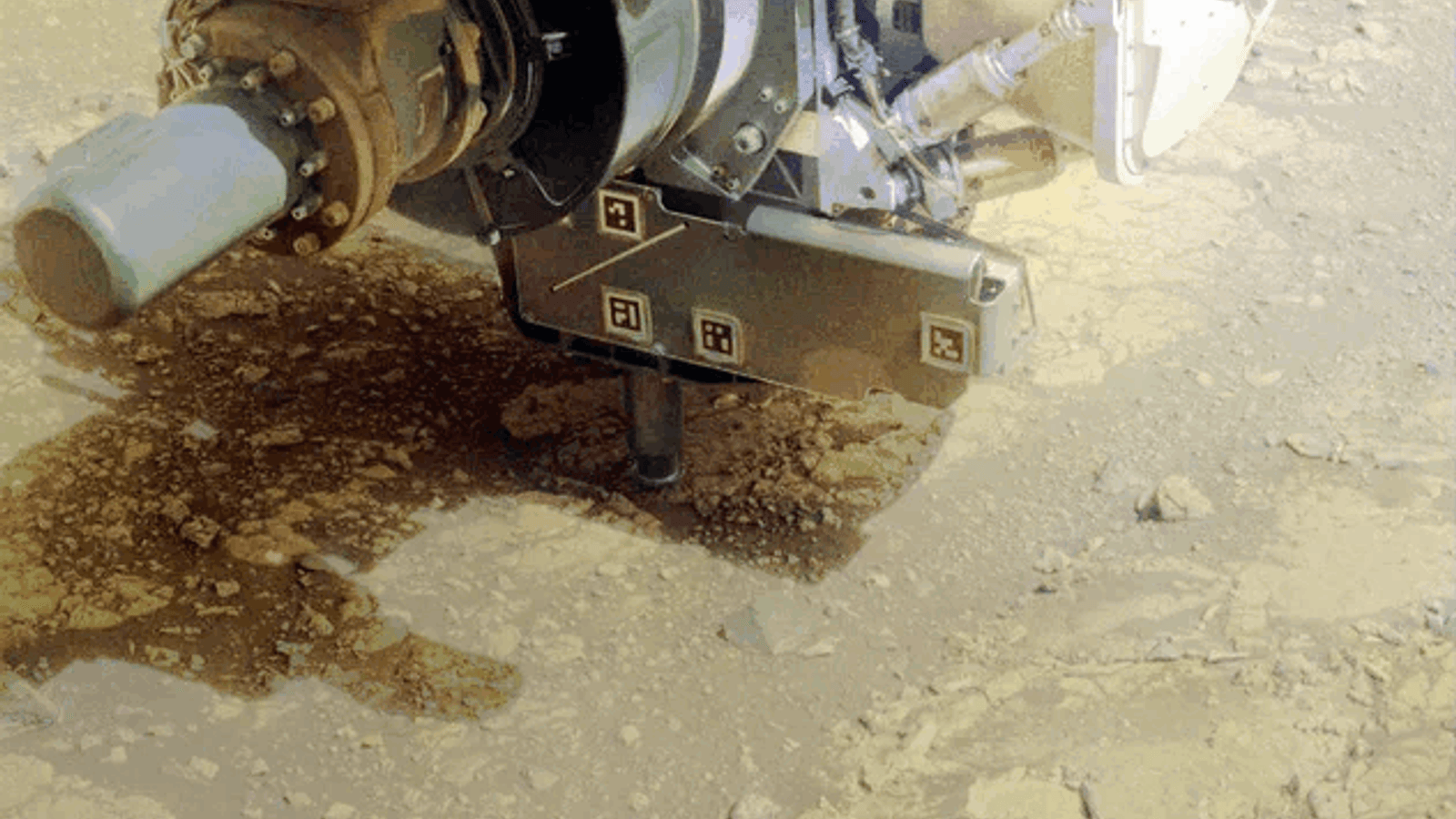 Сначала марсоход сточил примерно 5-сантиметровое пятно, затем использовал устройство, которое выпускает струю азота под давлением, чтобы убрать пыль.