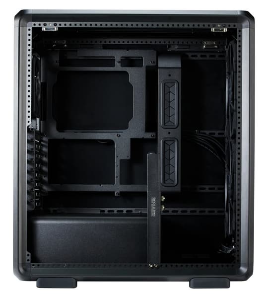 Корпус поддерживает материнские платы формата ATX, а также условно совместим с E-ATX и SSI-CEB. Максимальная длина видеокарты составляет 390 мм, высота процессорного кулера — до 190 мм, а блок питания может достигать 235 мм в длину. В наличии один универсальный отсек под накопитель: 2,5 или 3,5 дюйма. Поддерживаются радиаторы до 360 мм спереди и сверху.