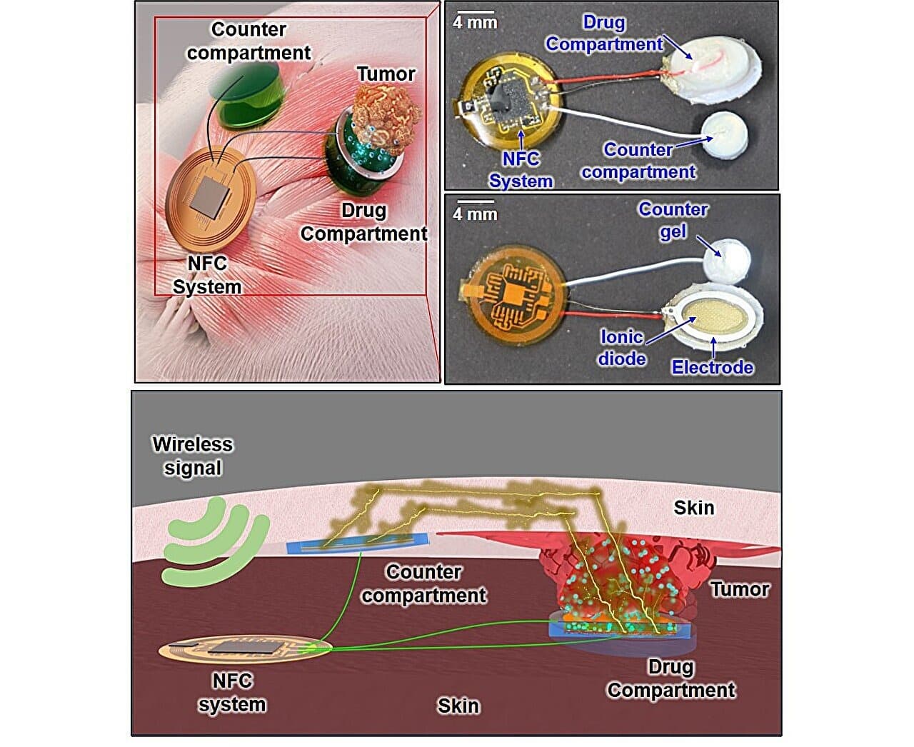 Прототип устройства, размером всего несколько миллиметров, включает два модуля — отсек с лекарством и вспомогательный резервуар — а также контроллер с поддержкой NFC (технология ближней беспроводной связи). Благодаря этому имплант можно включать и настраивать дистанционно.