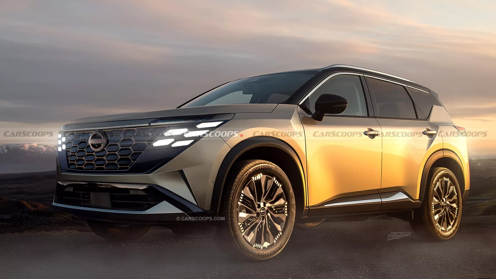 В рамках недавней презентации своих планов на будущее Nissan показал несколько тизерных изображений будущего X-Trail. Судя по ним, автомобиль получит смелый дизайн с массивной черной решеткой радиатора, включающей пять гексагональных элементов дневных ходовых огней с каждой стороны. Светодиодные фары расположены выше, а передняя кромка капота стала более вертикальной и квадратной. Передние крылья имеют вогнутые контуры, плавно переходящие в двери, что придает автомобилю более брутальный вид. Задняя стойка выполнена в духе флагманского внедорожника Patrol.