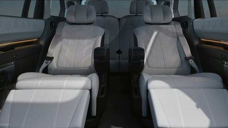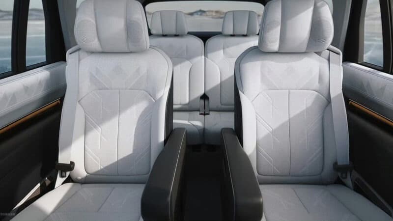 Салон Zeekr 9X располагает шестью сиденьями с компоновкой 2+2+2. Второй ряд автомобиля оснащен двумя креслами с электроприводом подлокотников и режимом «невесомости».