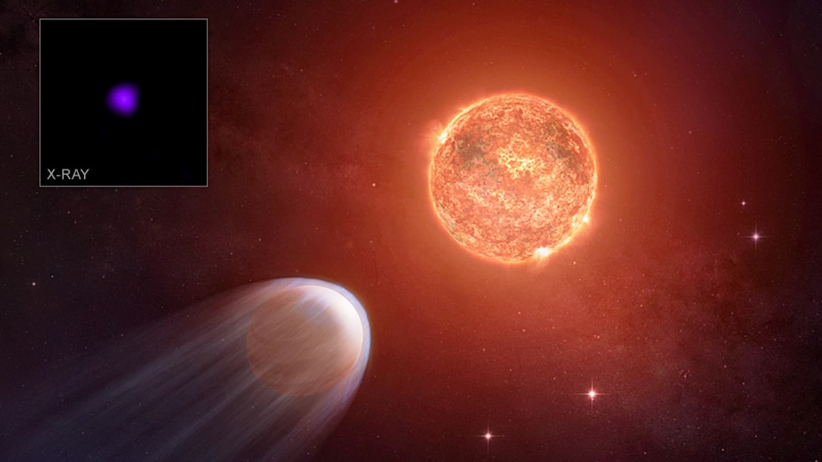 Экзопланета TOI 1227 b стремительно теряет свою атмосферу под воздействием интенсивного рентгеновского излучения от звезды, вокруг которой она вращается. К такому выводу пришла международная группа астрономов, проанализировав данные, полученные с помощью рентгеновской обсерватории «Чандра» (Chandra X-ray Observatory). Это одна из самых юных известных экзопланет, чей возраст оценивается всего в 8 млн лет.
